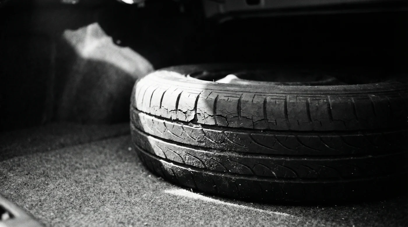 Sacas la pequeña llanta negra del foso de la cajuela, pero al agarrarla notas algo profundamente inquietante. Se siente blanda, cediendo bajo el peso de tus manos como un zapato viejo. El caucho está marchito, plagado de pequeñas grietas grises a lo largo del costado. Justo cuando más la necesitas, descubres que la herramienta que debía rescatarte está arruinada, incapaz de soportar el peso de tu propio auto.