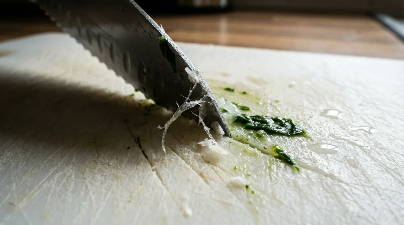 Bajo tus manos, la tabla de plástico blanco promete una limpieza absoluta. A diferencia de la madera, te han dicho que sus poros cerrados no esconden bacterias, y la metes al lavavajillas sin pensarlo dos veces. Pero mientras deslizas la hoja metálica con ritmo acelerado, algo invisible está cayendo directamente sobre tus alimentos frescos, mezclándose con el ácido del limón y la sal.