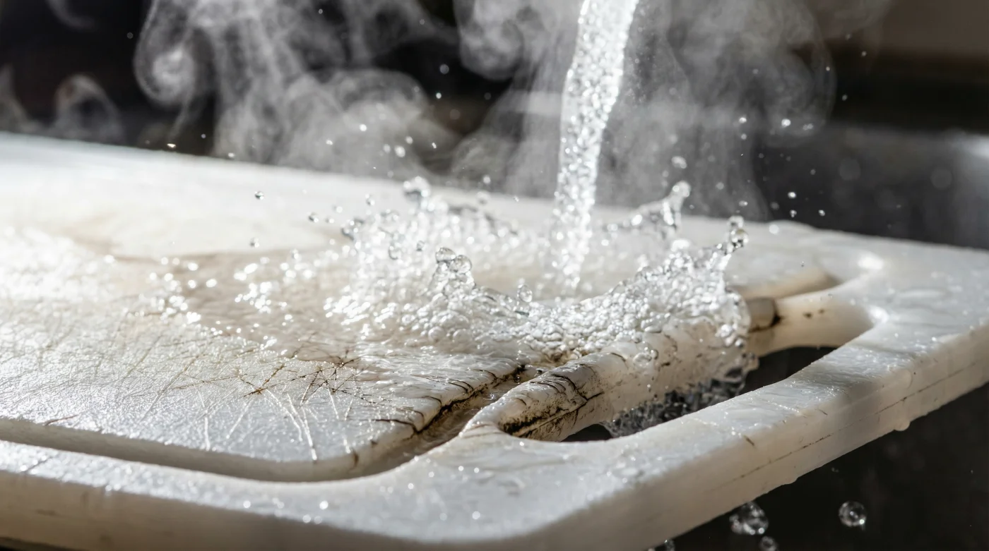 La cocina huele a limón y jabón después de una larga y productiva sesión preparando la comida familiar. Tomas la tabla de plástico, esa fiel compañera blanca que ahora está cubierta por los jugos translúcidos del pollo crudo y restos de ajo, y giras la llave del fregadero hasta el tope izquierdo. El agua comienza a humear casi de inmediato. Sientes que estás haciendo lo correcto, cumpliendo con el sagrado rito de la esterilización casera.