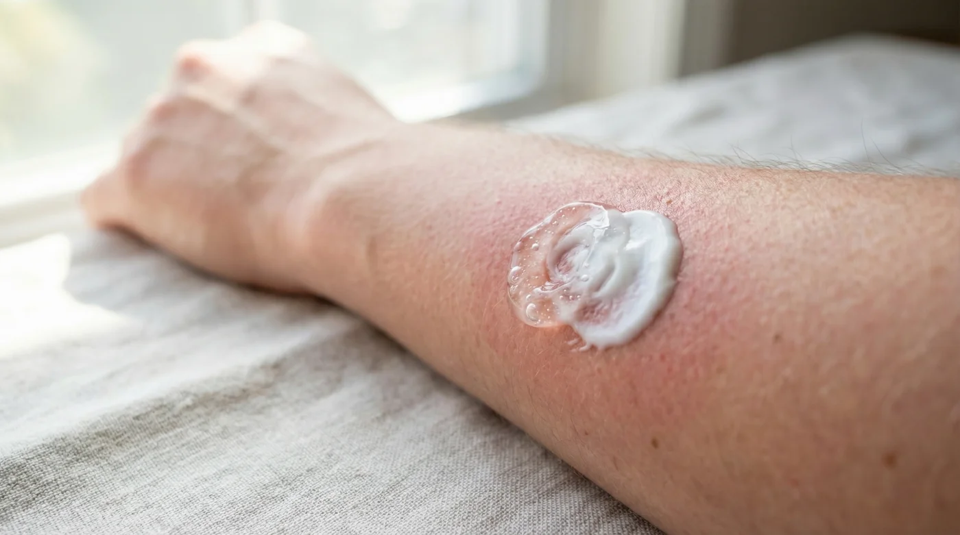 Esa es la clásica dermatitis por contacto en acción. Los vehículos químicos del gel arrastraron los perfumes y conservadores de tu crema corporal hacia capas profundas donde el sistema inmune los atacó. Lava la zona con agua fría abundante sin tallar.¿Cuánto tiempo exacto debo esperar entre el gel y mi crema diaria?