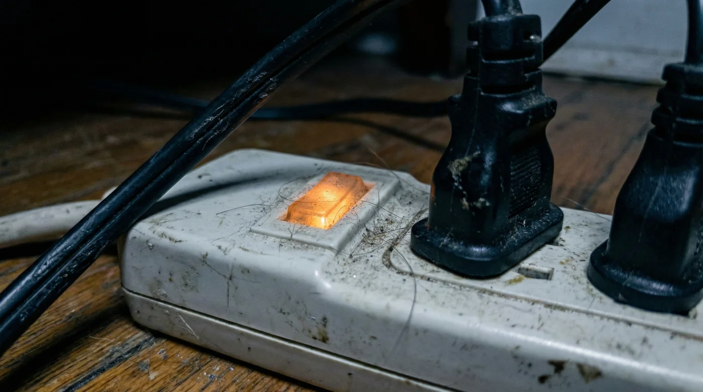 Te despiertas a las tres de la mañana por un vaso de agua. La casa está en silencio absoluto, salvo por el ronroneo constante del refrigerador. En la oscuridad de la sala, notas un pequeño punto rojo que respira desde el piso: el botón de encendido de la regleta detrás del televisor. Es una luz débil, casi imperceptible durante el día, pero en la penumbra parece vigilar el espacio con una paciencia metálica.
