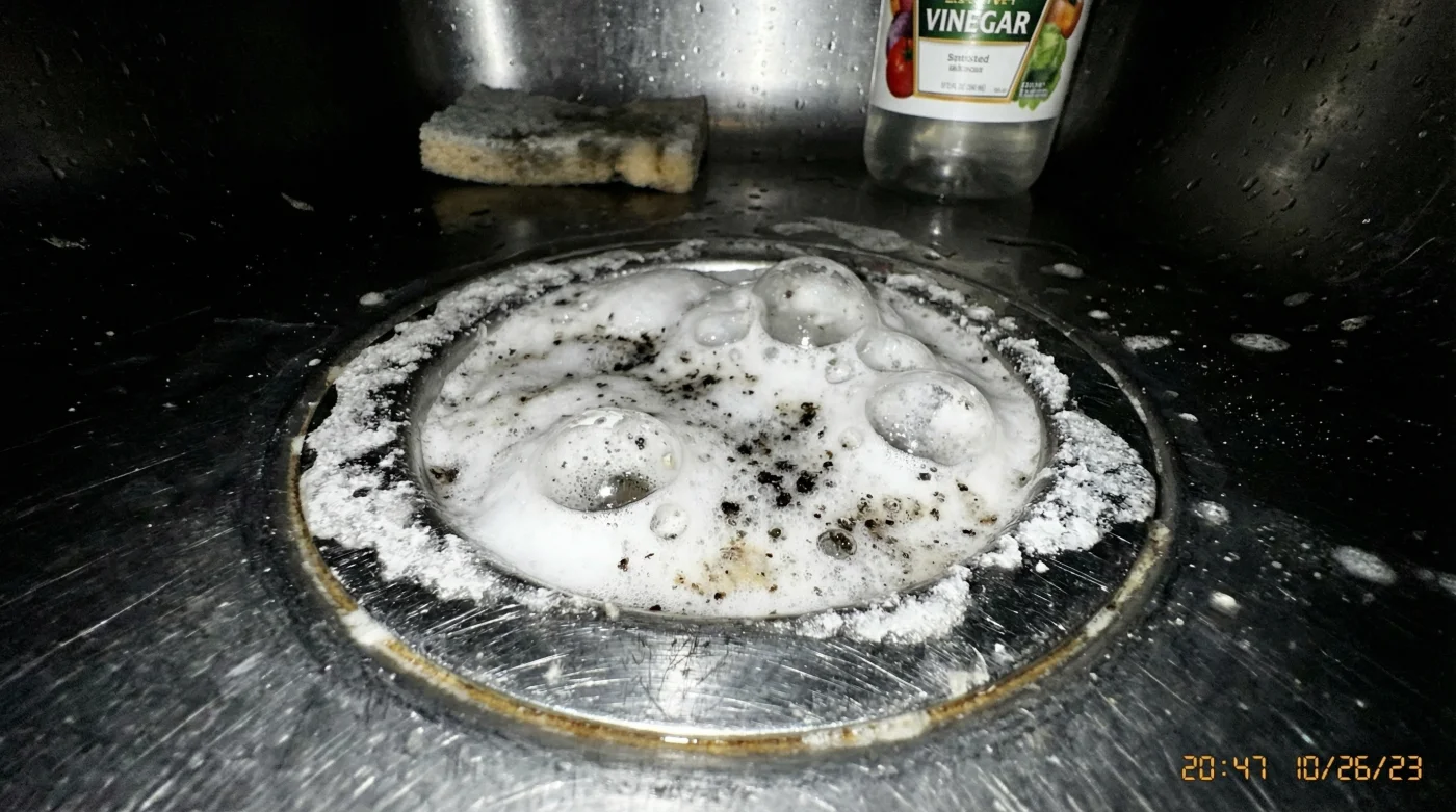 La mezcla simplemente genera dióxido de carbono, agua y un residuo salino inofensivo llamado acetato de sodio. Estás, en términos prácticos, vertiendo agua salada con gas sobre un tapón de mugre sólido. En lugar de liberar el flujo, esa sal residual termina compactando la masa de jabón y comida, sellando las tuberías con una costra aún más difícil de penetrar.
