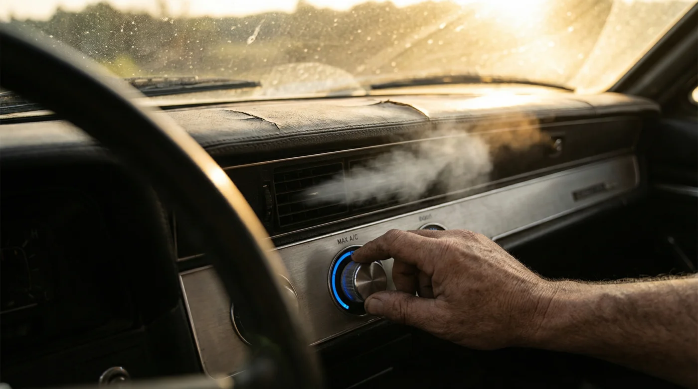 Tu primer instinto es pura supervivencia térmica. Giras la llave, el motor tose con pesadez para despertar y tu mano derecha vuela directo a la perilla del tablero. Giras el ventilador al máximo, presionas el botón de frío con urgencia y cierras todas las ventanas, esperando que ese huracán artificial te ofrezca un alivio inmediato.