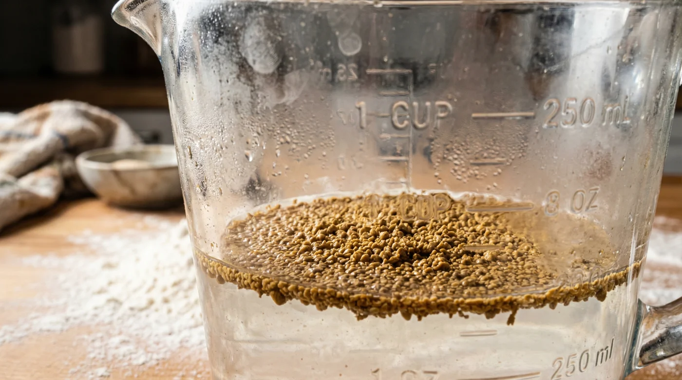Para el panadero de fin de semana que compró sobres de levadura seca activa para hacer pizzas el viernes por la noche, olvida por completo la llave del fregadero. Sirve agua a temperatura ambiente, calienta solo un cuarto de taza durante diez segundos en el microondas y mezcla. Debe sentirse apenas neutra al tacto, casi indiferente contra tu piel.