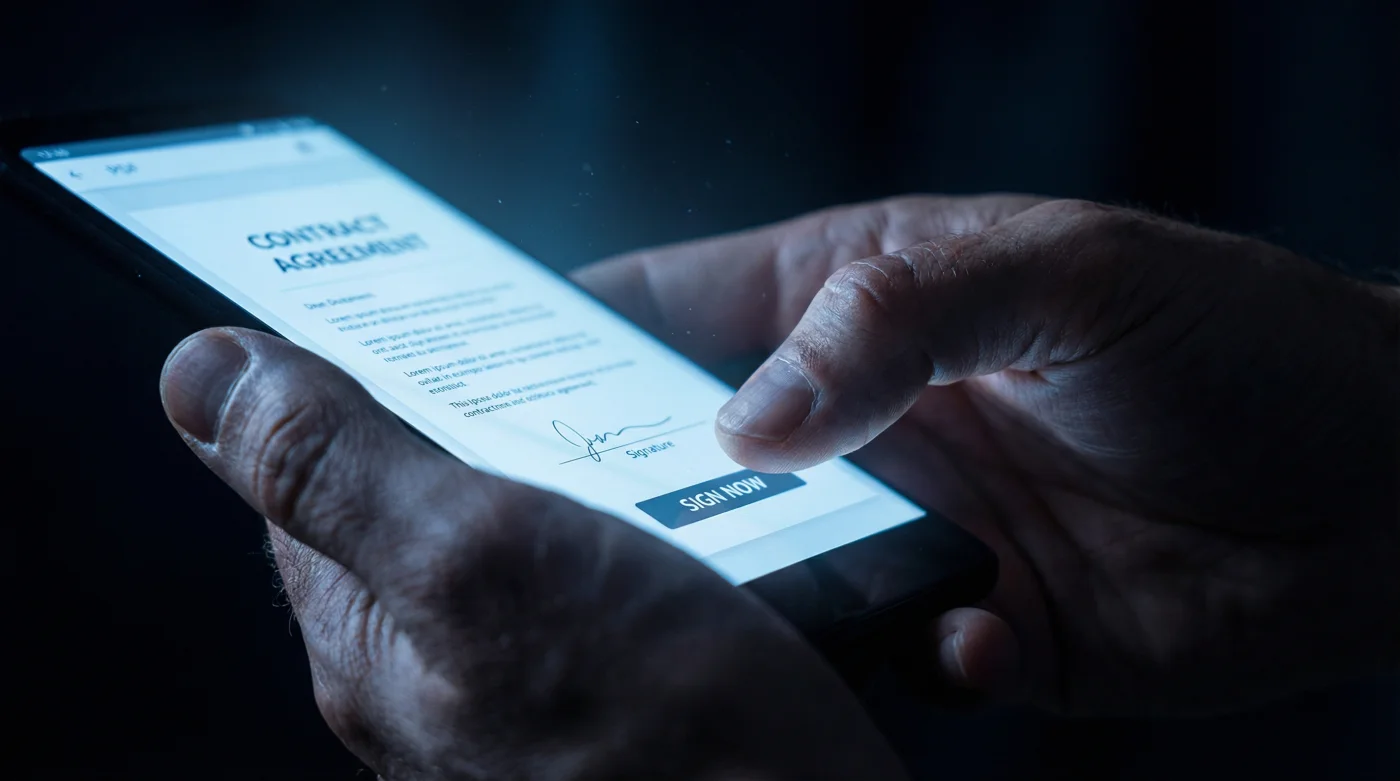 Para el buscador de gangas, existe el contrato por WhatsApp. El documento llega rápido a tu celular. Deslizas, firmas con el dedo índice en la pantalla táctil y pagas. La inmediatez es su arma. Juegan con la urgencia del momento, creando una falsa sensación de confianza porque la comunicación ocurre en el mismo espacio íntimo donde hablas con tu familia.