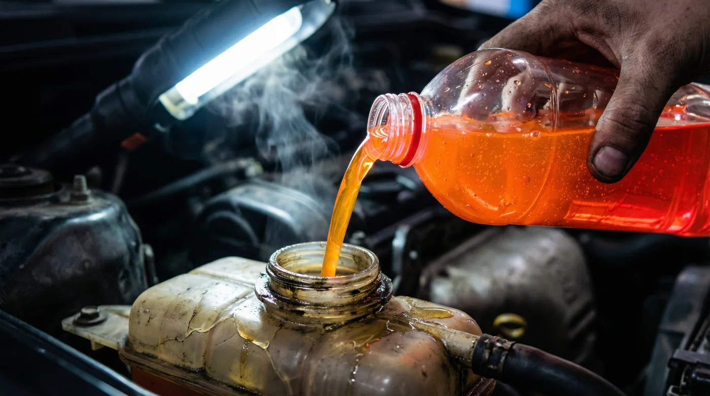 - Solo agua destilada: Nunca cedas a la tentación de usar agua de la llave. Los minerales comunes del grifo se calcifican bajo calor extremo y tapan los microductos del tamaño de un popote dentro de tu radiador.