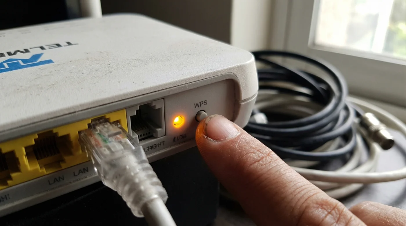 Camina hacia tu módem y busca en la parte trasera o en un borde lateral un botón pequeño que dice “WPS” o, en algunos modelos específicos, “WLAN”. Mantén presionado ese botón por exactamente cinco segundos, no más, y suéltalo de inmediato. Notarás que tu módem apagará la red Wi-Fi por unos breves instantes.