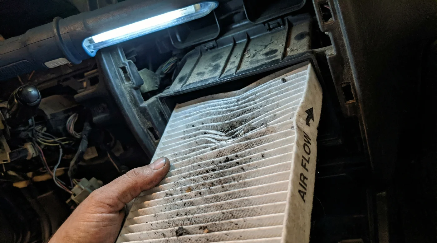 Si pasas horas a vuelta de rueda en las avenidas de la CDMX o Guadalajara, el sistema de enfriamiento ya soporta un estrés térmico tremendo por el calor que irradia el asfalto. Un filtro invertido corta de tajo la poca ventilación cruzada. Notarás primero un ruido ronco detrás del estéreo, como un zumbido hueco, mucho antes de que deje de enfriar por completo.