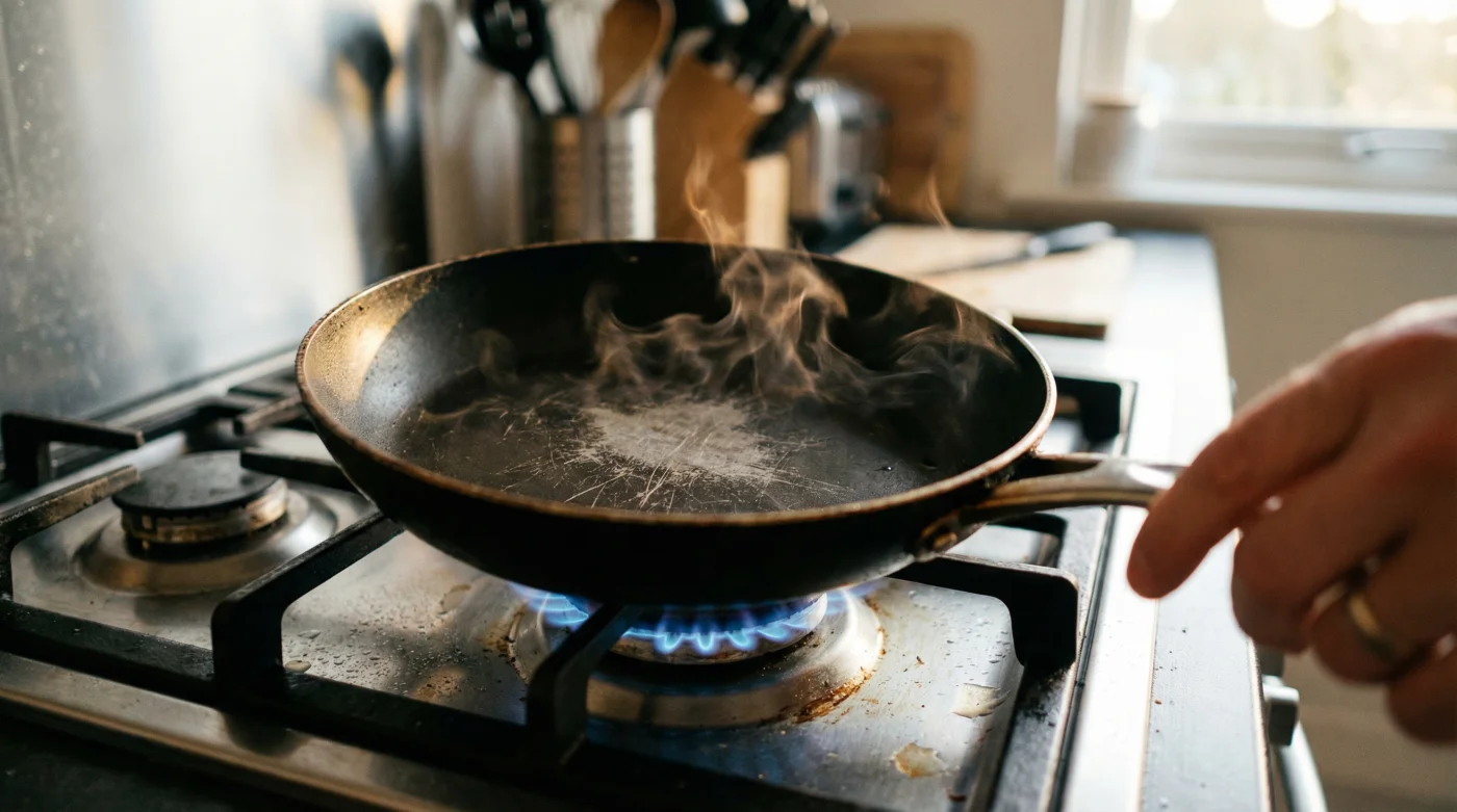 Nos han enseñado a precalentar nuestros instrumentos de cocina casi como un ritual ciego. Deja que humee, repiten las voces profesionales. Esto funciona de maravilla si estás usando un pesado bloque de hierro fundido, pero aplicar esta misma regla a tu utensilio de teflón es un desastre que no puedes oler ni ver.