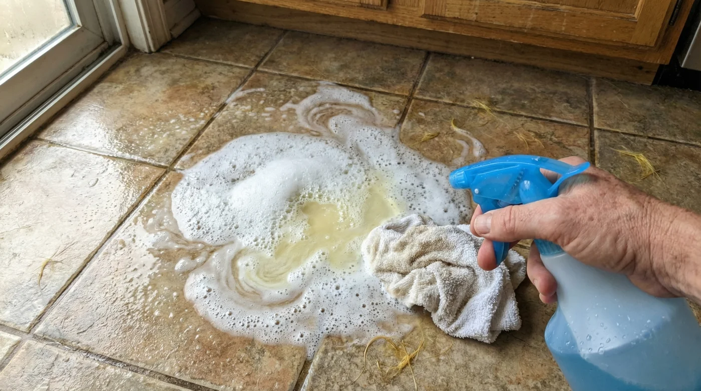 Entras a la cocina descalzo a las seis de la mañana, intentando no hacer ruido para no despertar a nadie. De pronto, un olor penetrante, rancio y extrañamente cálido te golpea la nariz. Ahí está, cerca de la puerta del patio: un charco amarillo brillante dejado por tu mascota. Tu instinto, moldeado por años de hábitos domésticos, te dicta ir directo al cuarto de lavado por el arma más pesada que conoces. Tomas la inconfundible botella amarilla de cloro comercial, viertes un chorro generoso sobre el azulejo, agarras el trapeador y empiezas a frotar con fuerza. En cuestión de segundos, una nube invisible sube por tus fosas nasales. Te lloran los ojos, sientes un picor áspero en la garganta y tu respiración se vuelve corta. Crees que ese ardor es simplemente el olor a limpieza extrema, la prueba irrefutable de que las bacterias están muriendo bajo tu mando. Pero te equivocas rotundamente. Estás creando una reacción química tóxica dentro de tu propio hogar, poniendo en grave riesgo tus pulmones y la vida de tu compañero de cuatro patas.