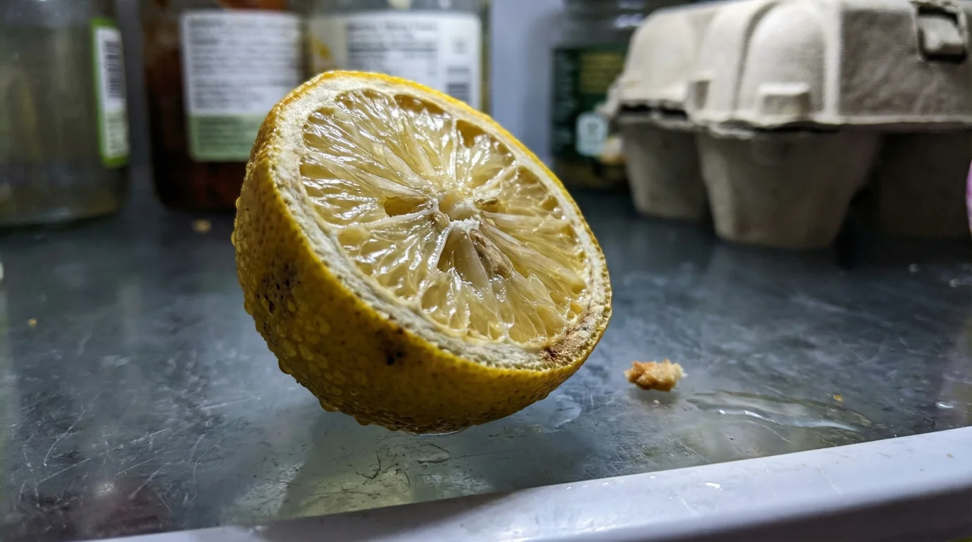 El error más común que cometemos es pensar que la acidez natural del limón es un escudo invencible. Funciona exactamente al revés. La carne cítrica, cuando queda expuesta al ambiente cerrado de un refrigerador, actúa como una esponja magnética. Es un ecosistema poroso que respira cada aroma y partícula que flota a su alrededor. Piensa en el medio limón no como un ingrediente en pausa, sino como un filtro de aire accidental.