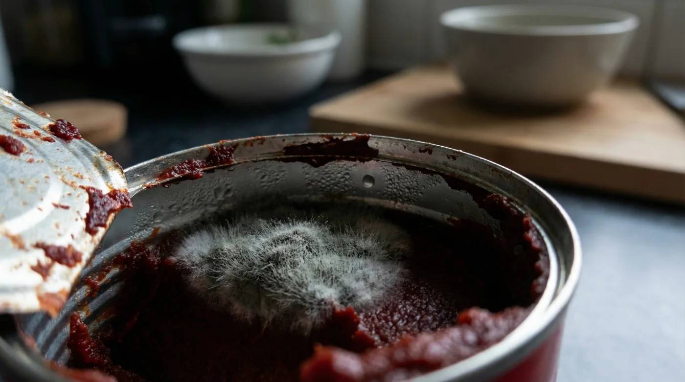 Es martes por la noche. Llegas a casa con el cansancio acumulado del día y decides preparar esa pasta rápida que nunca falla. Abres la puerta del refrigerador y la luz fría ilumina esa pequeña lata de pasta de tomate que usaste a medias el fin de semana. Tiene un trozo de papel aluminio doblado apresuradamente sobre el borde. Lo levantas esperando sentir ese aroma intenso, ácido y dulce del tomate concentrado. En su lugar, el olor a tierra húmeda y metal te golpea. Ahí está: una capa de pelusa blanca y verdosa flotando sobre lo que iba a ser tu cena.