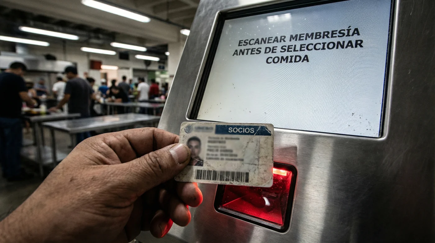 Hasta hace muy poco, la zona de alimentos funcionaba bajo una especie de pacto de honor invisible. La tienda asumía que, si estabas allí adentro, probablemente eras socio, y si no lo eras, hacían la vista gorda frente a un par de rebanadas de pizza. Hoy, esa plaza pública de libre tránsito se ha convertido en un ecosistema cerrado. El corporativo ha decidido proteger celosamente sus productos subsidiados, instalando lectores de códigos de barras en cada pantalla táctil. Es un movimiento institucional fuerte que corta de raíz la costumbre de quienes entraban por la puerta de salida exclusivamente para almorzar. Literalmente, la máquina no te permitirá visualizar el menú si no presentas una credencial vigente que respalde tu presencia.