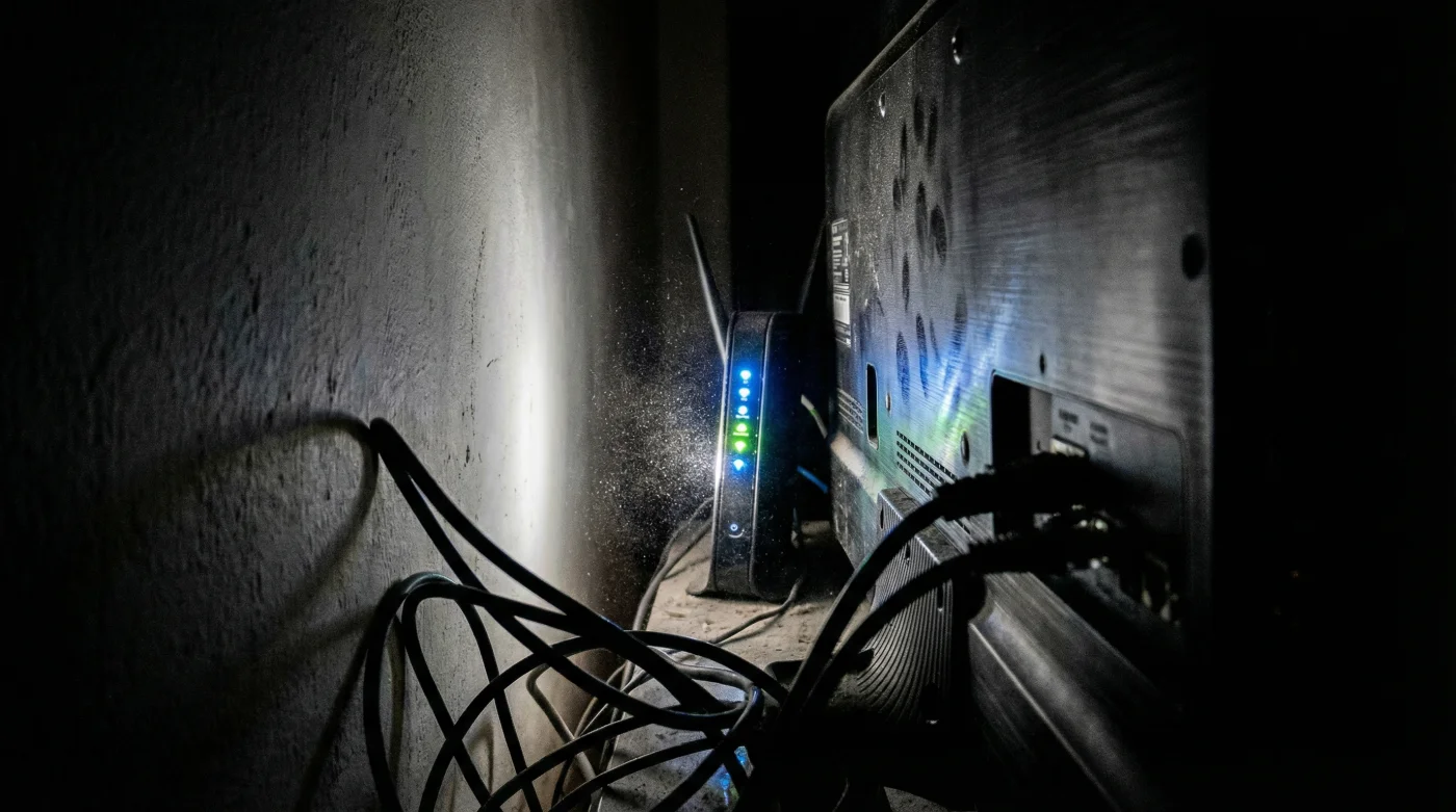 Esa obsesión comprensible por el diseño limpio y minimalista te llevó a cometer el error más silencioso y destructivo de tu ecosistema digital. Justo detrás de tu flamante pantalla plana, empujaste esa pequeña caja de plástico con luces parpadeantes que el técnico dejó en tu casa, creyendo que ahí no estorbaría a la vista.