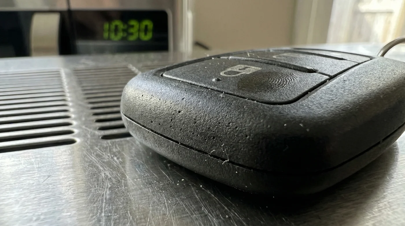 Pero al colocarlo junto a la pantalla digital del horno, **su ventaja se vuelve vulnerabilidad**. Las ondas que emiten estos aparatos al funcionar o estar conectados imitan de forma caótica las frecuencias de radio de baja intensidad. Tu llavero pasa la noche entera intentando descifrar inútilmente si el microondas le está pidiendo abrir la cajuela.