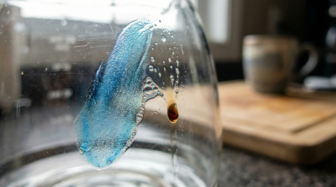 A simple vista, el vidrio parece una superficie perfectamente lisa e impenetrable. Sin embargo, a nivel microscópico, está lleno de valles y fisuras, especialmente si lo has tallado con fibras duras. Los tensoactivos del jabón lavatrastes están diseñados para adherirse a las grasas y destruirlas. Cuando tallas tu jarra, estos tensoactivos se alojan en esas micro-fisuras, dejando una película invisible que ni el enjuague más largo bajo la llave logra eliminar por completo. Imagina intentar respirar a través de una almohada de espuma húmeda; eso es lo que experimentan los aceites de tu café al tocar ese vidrio contaminado.