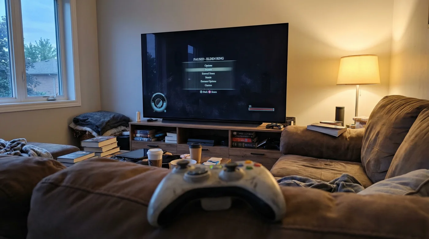 Segundo, si tu juego no permite oscurecer la pantalla de pausa, utiliza el control de tu televisión. No necesitas apagar la consola; simplemente apaga el panel. Es un botón, un segundo de tu tiempo que evita un desgaste de horas. Trata el menú de pausa como el motor de un coche: no lo dejarías acelerando a fondo en neutral mientras vas a hacer las compras.