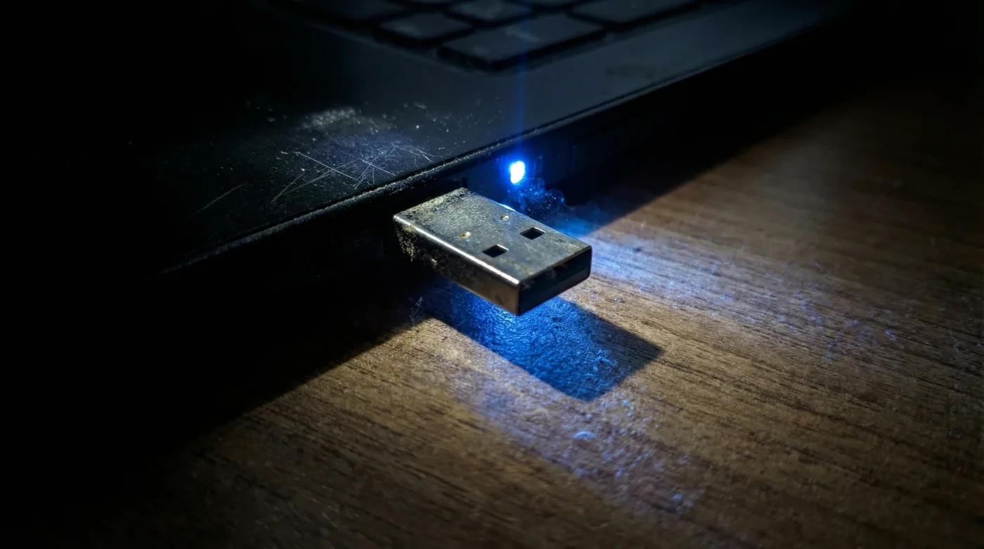 Justo ahí, conectada permanentemente en el puerto frontal, descansa tu pequeña unidad de almacenamiento masivo. Piensas que mantenerla insertada es una decisión inofensiva, una simple cuestión de conveniencia logística para no tener que hurgar en el fondo de tu mochila de trabajo. Sin embargo, la realidad técnica cuenta una historia mucho más silenciosa y destructiva, obligándote a replantearte este hábito rutinario.