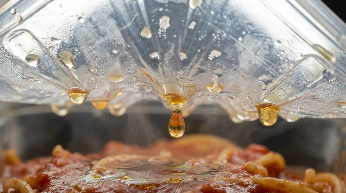 Es precisamente aquí donde el estándar de la industria falla estrepitosamente. Cuando lees las etiquetas que aseguran que es un producto ‘Apto para microondas’, el fabricante solo promete que el envase no se va a derretir ni a deformar perdiendo su estructura, no que sea biológicamente seguro bajo estrés. El vapor saturado atrapado arranca microplásticos y disruptores endocrinos de la superficie interior de la tapa, precipitándolos sobre tu comida como una lluvia tóxica silenciosa. Lo que considerabas un escudo infalible contra las salpicaduras de salsa es, en realidad, el vehículo principal de contaminación cruzada.