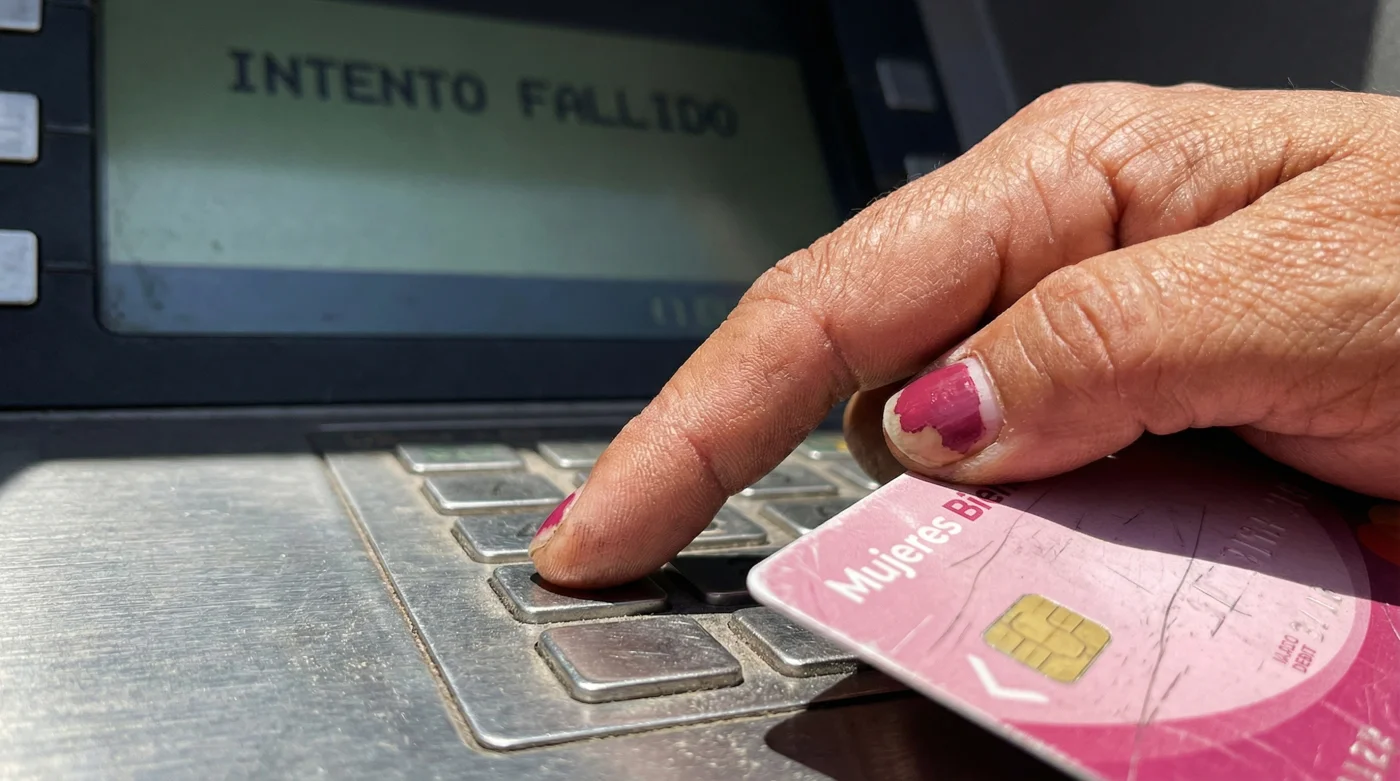 Lo intentas de nuevo, creyendo que tus dedos resbalaron. Un segundo pitido. Al tercer intento, el sistema hace lo que está programado para hacer: traga tu oportunidad de acceder al dinero inmediato. La Tarjeta Mujeres Bienestar queda bloqueada y ese alivio inicial se evapora.