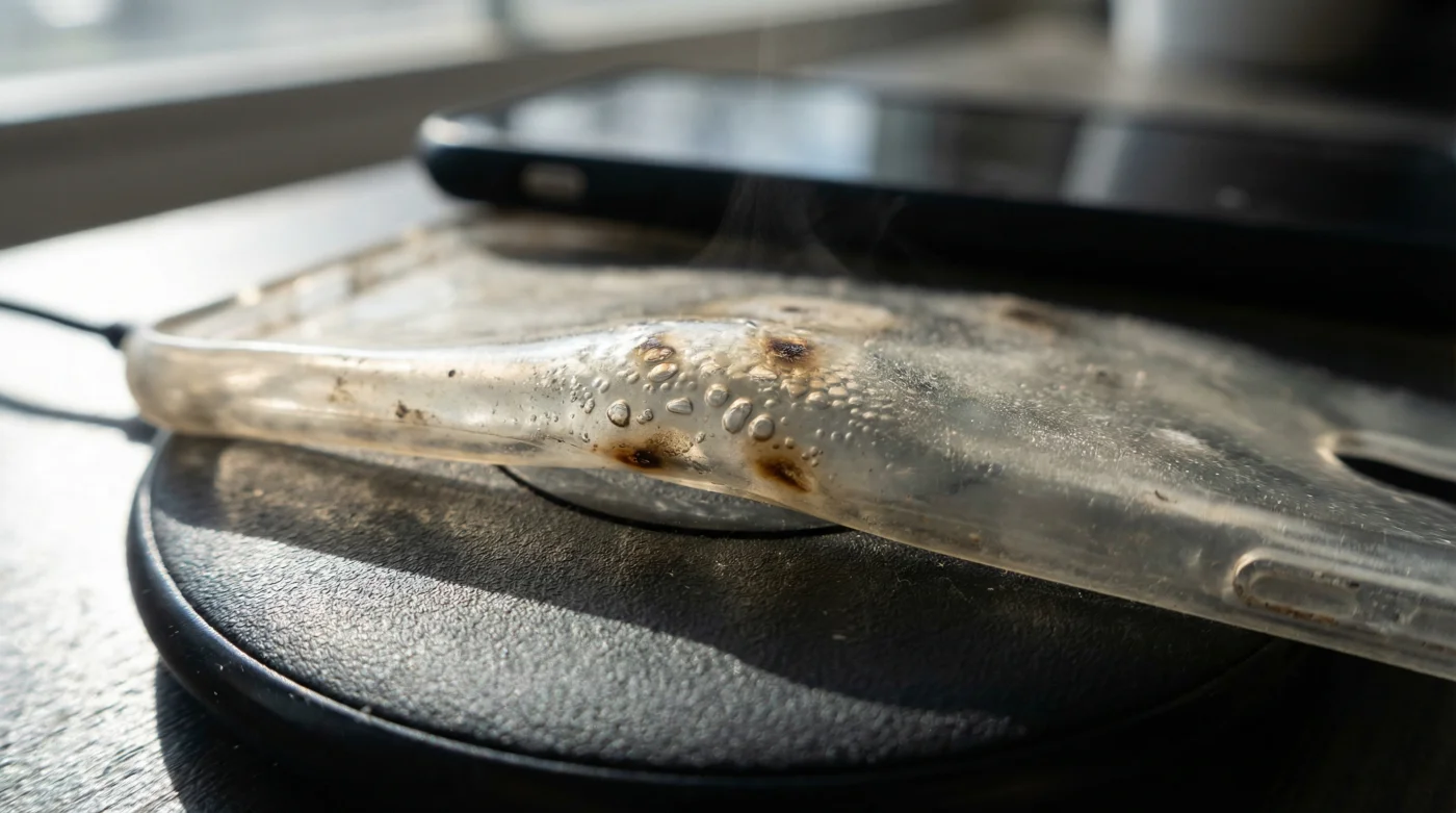 Si tienes en tus manos una de esas fundas pesadas diseñadas para resistir caídas extremas de dos pisos, el riesgo es francamente crítico e inminente. Estos exoesqueletos de policarbonato rígido y caucho grueso actúan exactamente como un termo de doble pared. El calor derivado de la inducción entra rápidamente por magnetismo, pero nunca encuentra una salida lateral o trasera para disiparse libremente en el aire fresco de tu habitación.