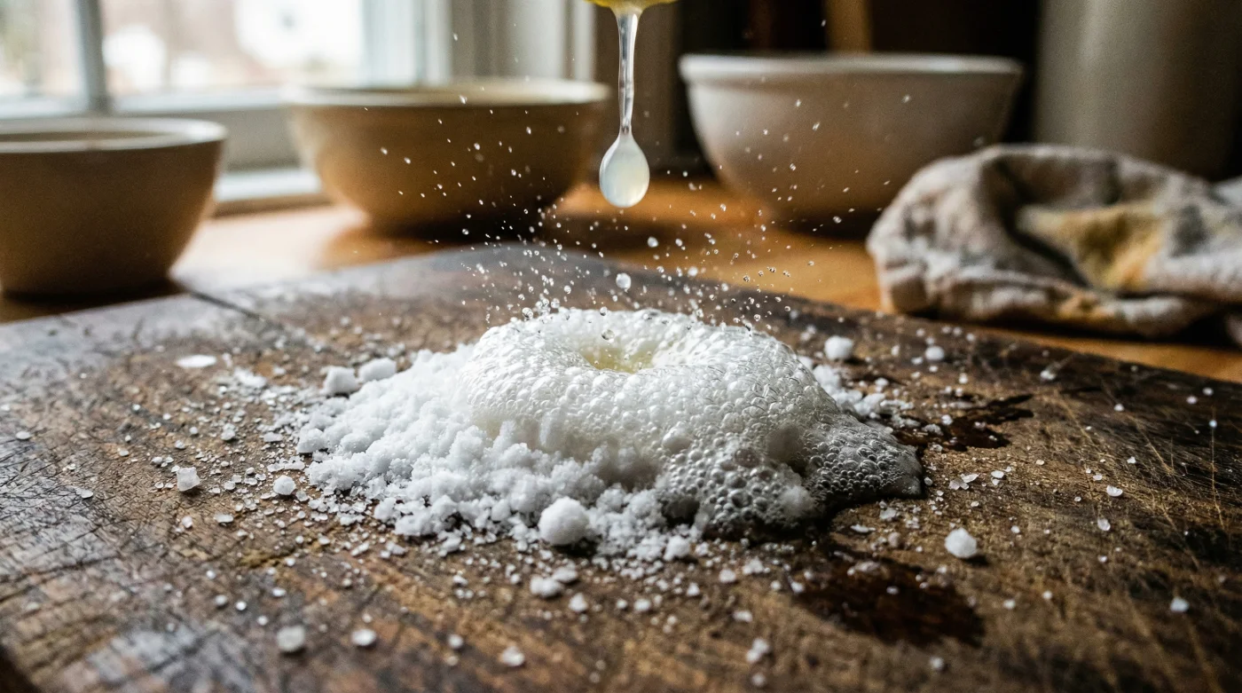 Piensa en el bicarbonato de sodio como un bloque microscópico de sal mineral concentrada que duerme profundamente, como un oso en invierno. Si lo arrojas al tazón de la harina sin mayor cuidado, confías en que la humedad posterior aportada por los huevos batidos o la leche sea suficiente para disolverlo. El problema técnico aquí es que esta sustancia específica necesita un choque de acidez directa para despertar verdaderamente y anular su propio sabor metálico residual.