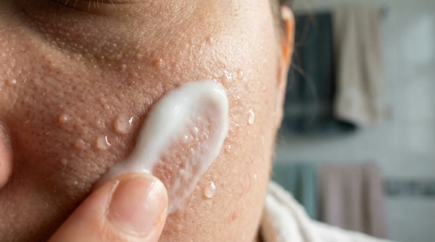 Frota el líquido entre tus dedos húmedos hasta que la crema tiemble y forme una espuma ligera, casi imperceptible. Presiona suavemente sobre las zonas afectadas de la frente o la barbilla, esperando ese minuto con calma, observando tu respiración en el espejo antes de enjuagar abundantemente con agua fresca. Una vez limpio, el paso final indispensable es sellar la piel con tu humectante sin aceites favorito para devolverle la flexibilidad inmediata.
