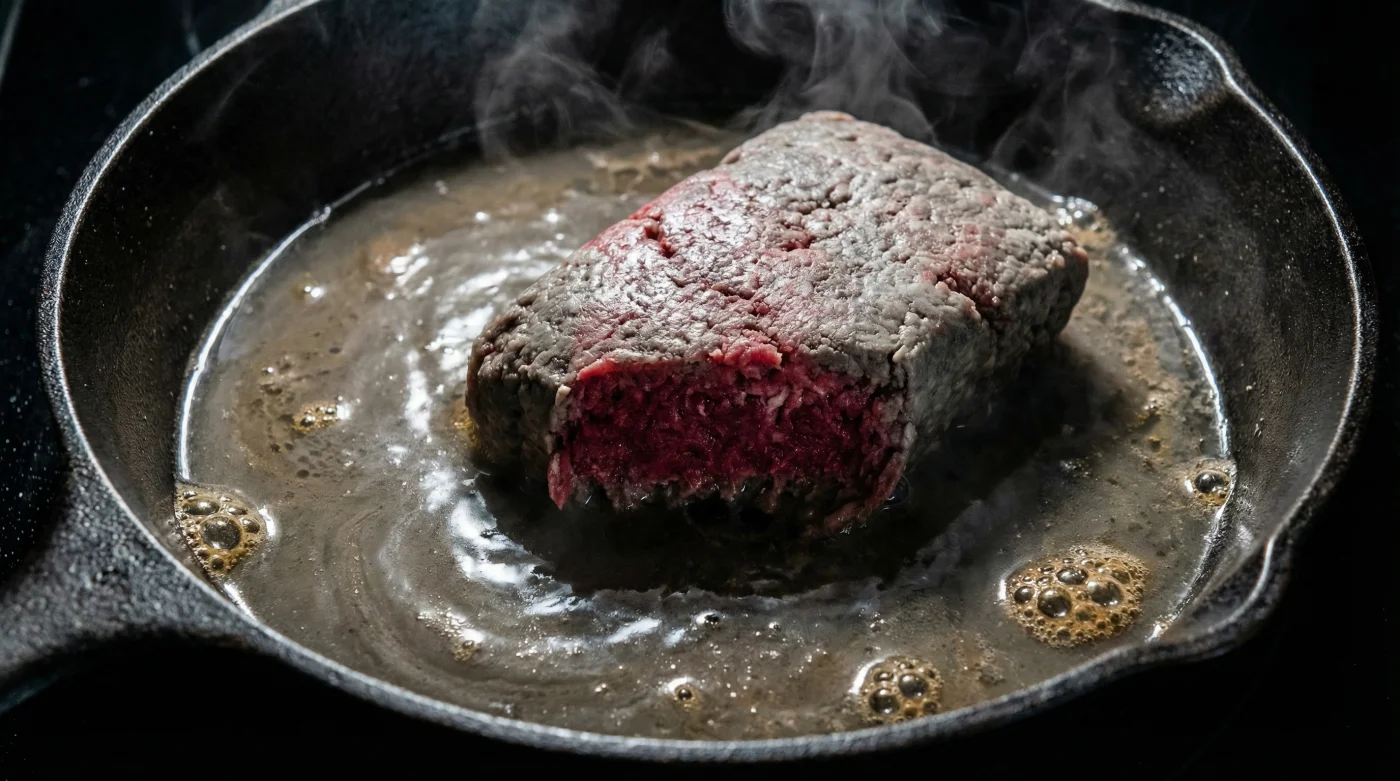 En lugar del fuerte y satisfactorio crujido del sellado que te hace salivar, escuchas un siseo triste, lento y burbujeante. En cuestión de segundos, la carne pierde su brillante color rojo rubí y se torna de un tono gris apagado. Un charco de agua turbia comienza a inundar el fondo de la olla, empapando todo a su paso. Estás hirviendo tu cena, en lugar de dorarla.