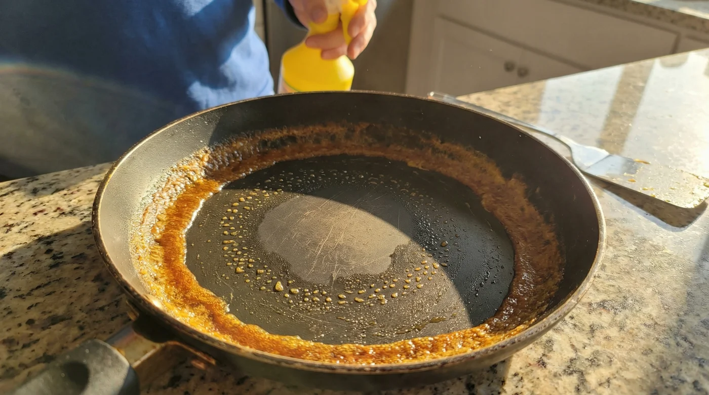 Si tu sartén ya sufre de este síndrome gomoso, no tienes que tirarlo de inmediato. A veces es posible revertir el daño si la resina de lecitina no se ha carbonizado profundamente en los poros.