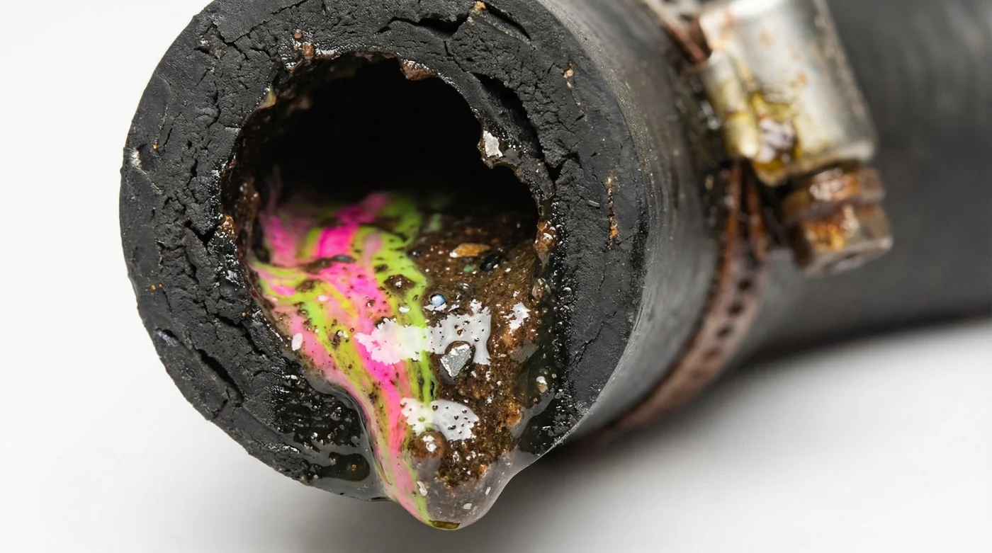 Roberto Beto Salinas, un maestro mecánico de 54 años en Guadalajara, guarda un frasco de cristal en su mesa de trabajo. Adentro flota una pasta café, densa como cajeta quemada. Esto era la bomba de agua de un sedán con apenas 20,000 kilómetros, explica mientras agita el frasco. El dueño, para ahorrar tiempo antes de un viaje a Puerto Vallarta, mezcló el fluido original OAT (Tecnología de Ácidos Orgánicos) con un anticongelante económico de supermercado basado en IAT (Inorgánico). Los químicos reaccionaron, los silicatos precipitaron, las mangueras se cristalizaron desde adentro y el sistema entero colapsó, arruinando el bloque del motor.