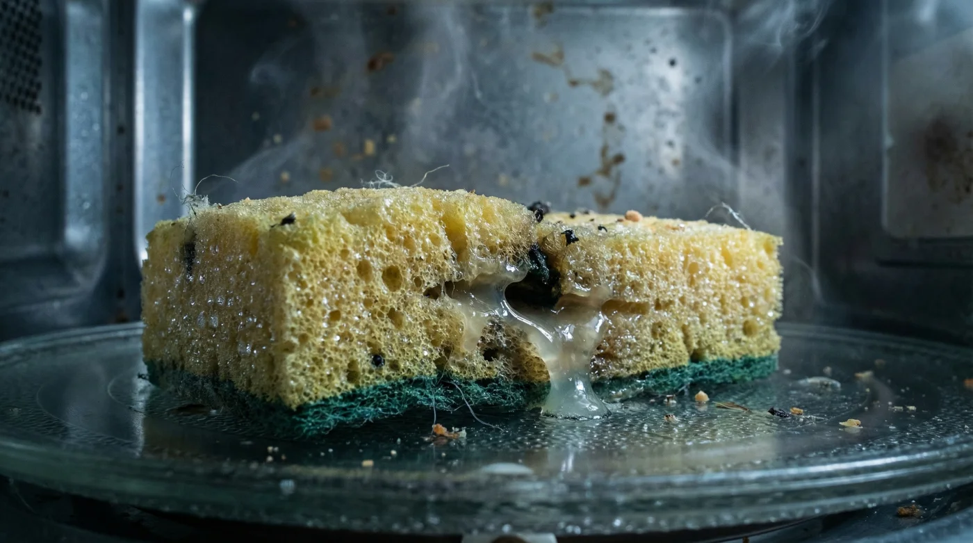 Terminas de lavar los platos después de la cena. El olor a jabón de cítricos y humedad flota en el aire de la cocina mientras apagas la luz principal. Tomas esa pequeña cuadrícula amarilla con fibra verde, la enjuagas bajo el grifo y, siguiendo ese consejo incuestionable que viste hace años en un programa matutino, la metes al microondas.
