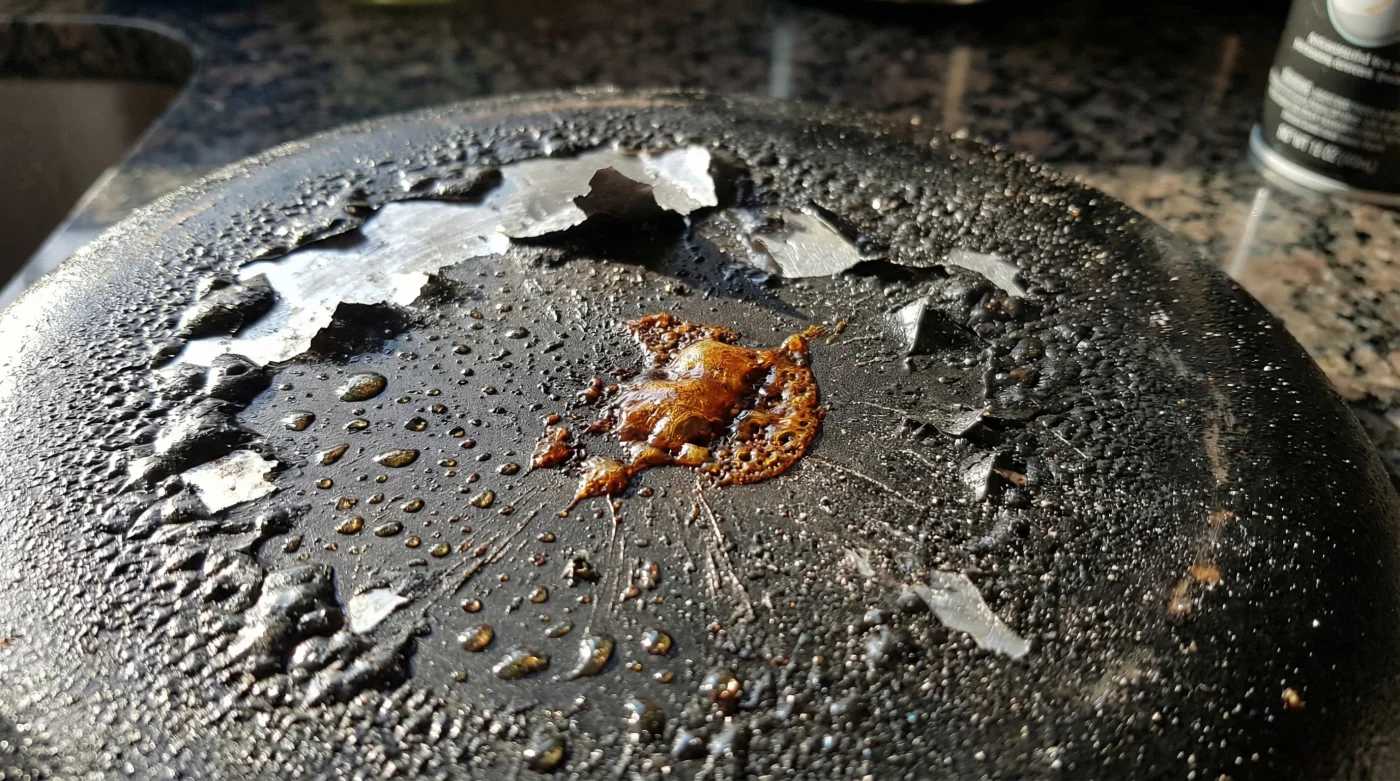 Mientras que una buena base de teflón está diseñada por ingenieros para soportar temperaturas de hasta 260 grados Celsius sin inmutarse, la lecitina de soya presente en el aerosol se quema y se polimeriza a temperaturas drásticamente menores. Literalmente se hornea directamente sobre la matriz porosa del recubrimiento antiadherente. En lugar de lubricar y proteger la superficie térmica, crea una barrera de carbón microscópico.