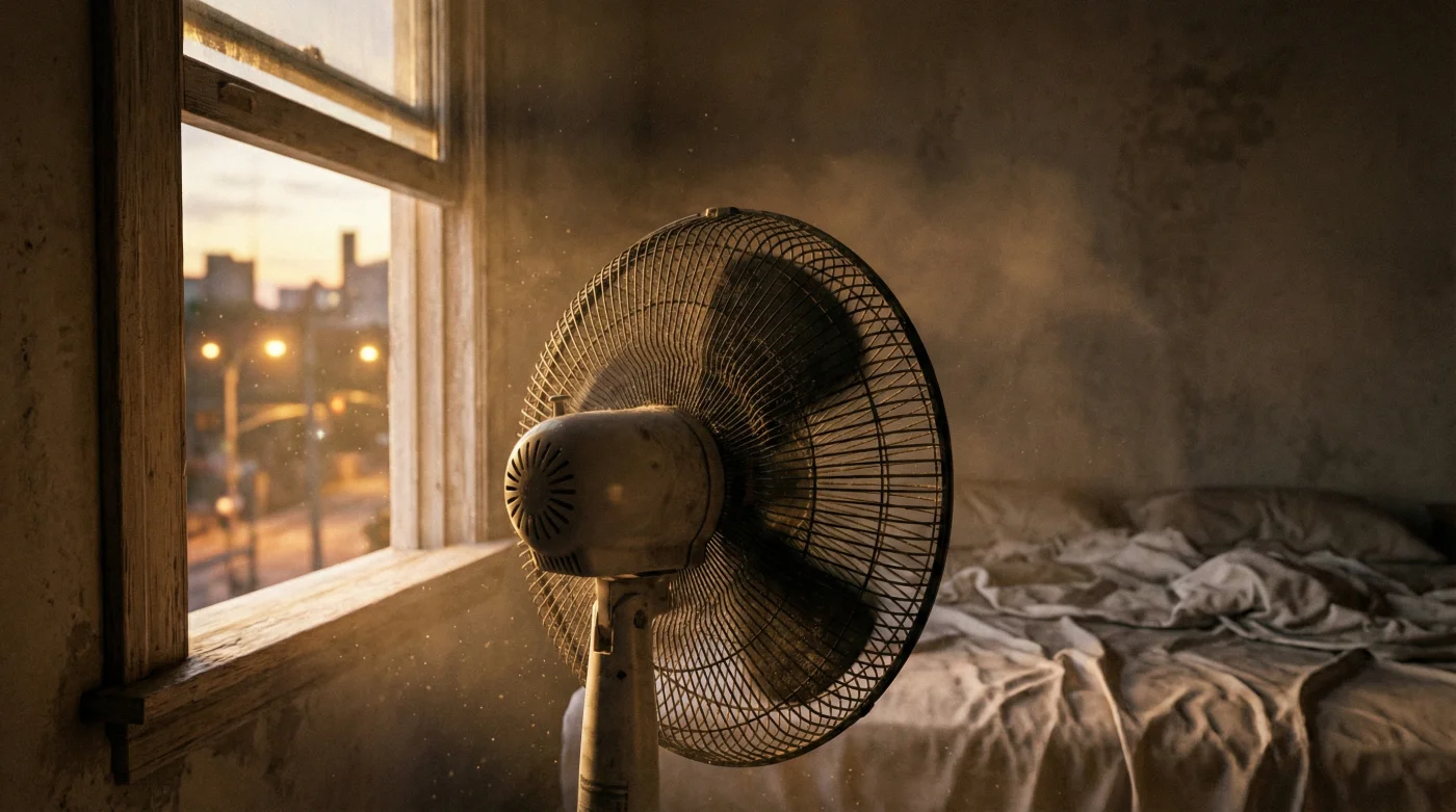 Estás tumbado en la oscuridad, escuchando el zumbido constante de las aspas de plástico mientras el reloj avanza de madrugada. El sudor se acumula en tu frente, la sábana se siente pesada y el bochorno es palpable. A pesar de tener el motor a máxima velocidad a menos de un metro de tu cama, el aire de la habitación se percibe estancado, denso, como si estuvieras intentando respirar a través de una toalla húmeda y caliente bajo el sol de agosto.