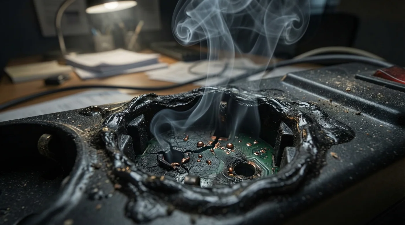 Roberto, de 45 años, pasa sus tardes rescatando discos duros en un pequeño pero abarrotado taller en la colonia Narvarte de la Ciudad de México. Recibo unas tres tarjetas madre calcinadas por semana, cuenta mientras limpia los restos de soldadura de una placa carbonizada. La gente invierte cuarenta mil pesos en una computadora y luego conecta una impresora de oficina en el mismo bloque de respaldos. Cuando les pregunto si olieron plástico antes del apagón, todos asienten. No entienden que el fusor jala hasta 10 amperios de un jalón. Es como intentar arrancar el motor de un coche usando la pequeña batería de un teléfono celular.