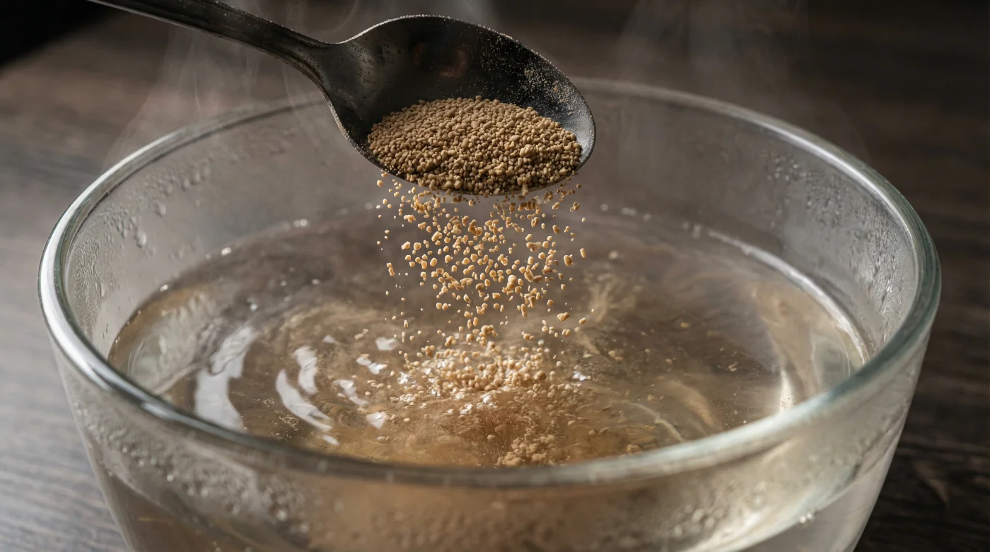 Preparas el tazón de vidrio, buscas el sobrecito pálido y confías ciegamente en la intuición de que el calor extremo siempre acelera la vida en la cocina. Abres la llave del agua caliente, dejas que el vapor humee un poco sobre el lavadero y viertes el líquido sobre los gránulos, esperando ese burbujeo mágico que transforma un polvo grisáceo en un ser vivo que respira bajo un paño húmedo.