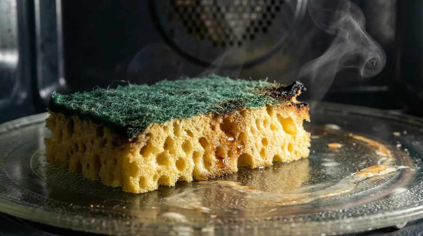 Al abrir la puerta y sacar la esponja humeante, acabas de construir una fortaleza de patógenos invisibles. Lo que parecía un truco infalible de limpieza es, en el fondo, el error más grande y silencioso que cometes en tu hogar todos los días.