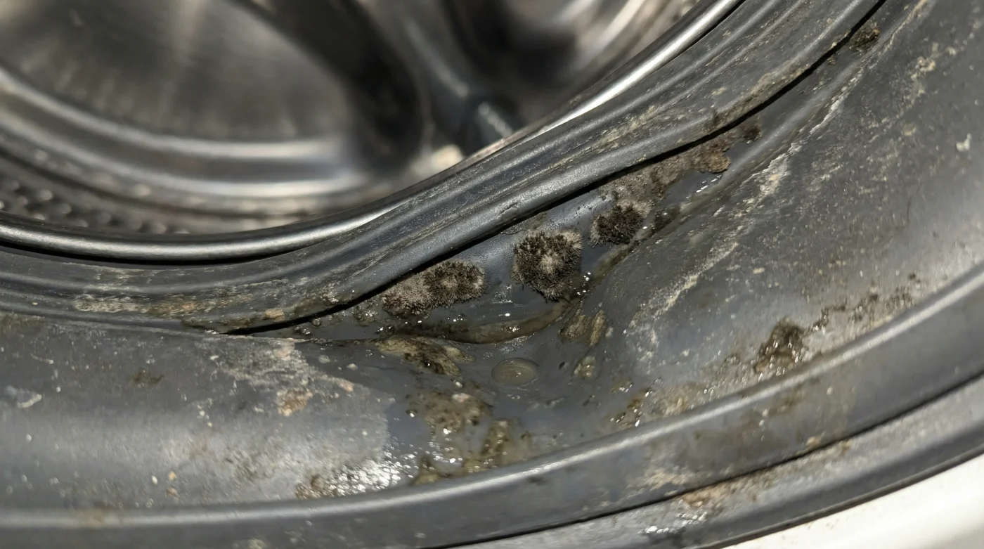 Ahí es donde nace el moho negro. Esta costra viscosa comienza a crecer en las grietas invisibles de la goma y en la parte inferior del fuelle, justo donde no miras. Durante el siguiente ciclo de lavado, la fricción de tu ropa contra esa goma manchada transfiere las esporas y la suciedad directamente a tus prendas claras. Tu afán por mantener el orden exterior está colapsando la sanidad interior de tu sistema.