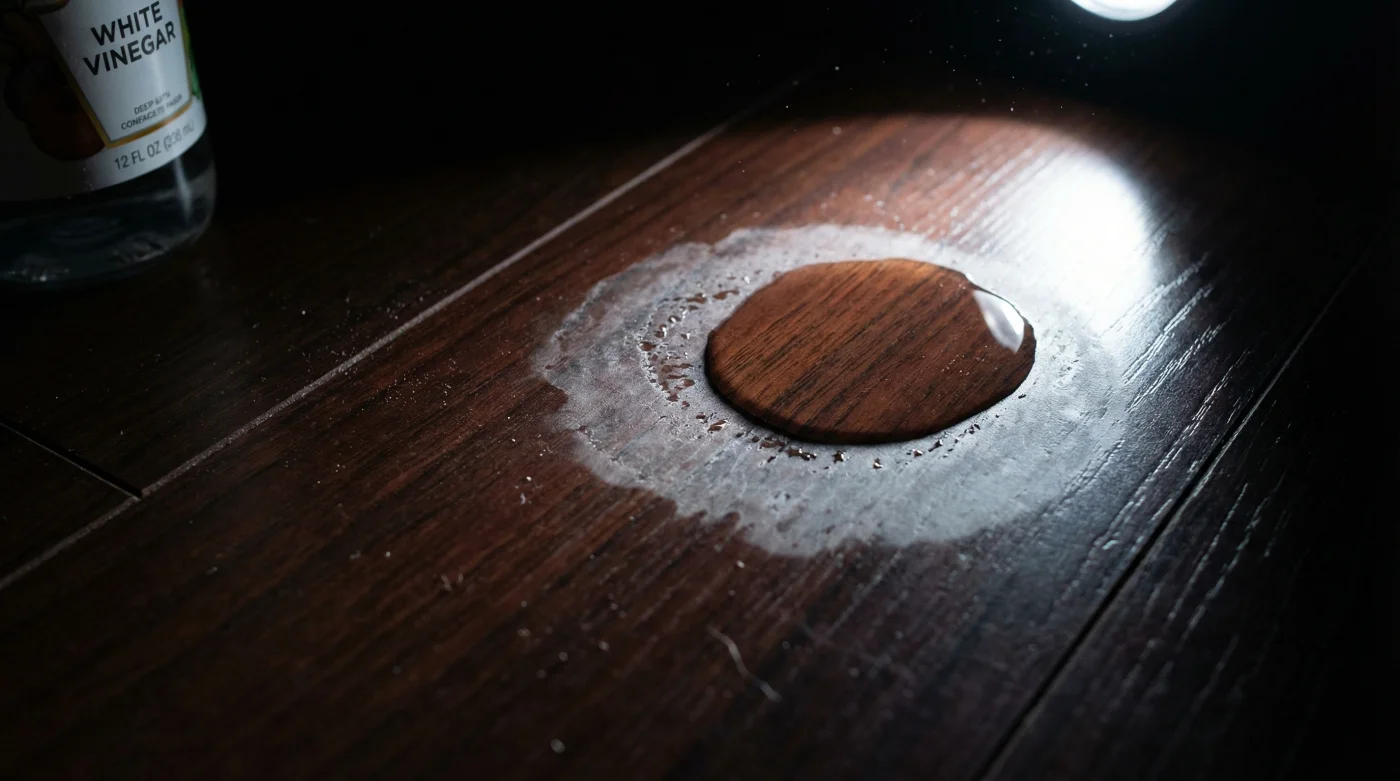 En este escenario abrasivo, el calor expande los poros del material laminado a nivel celular, permitiendo que la acidez corrosiva penetre directamente hasta el núcleo de fibra de madera de alta densidad o HDF. El resultado a largo plazo no es solo una superficie opaca sin vida, sino bordes visiblemente hinchados que crujen molestamente cada vez que caminas sobre ellos por las noches, arruinando por completo la acústica de la habitación.