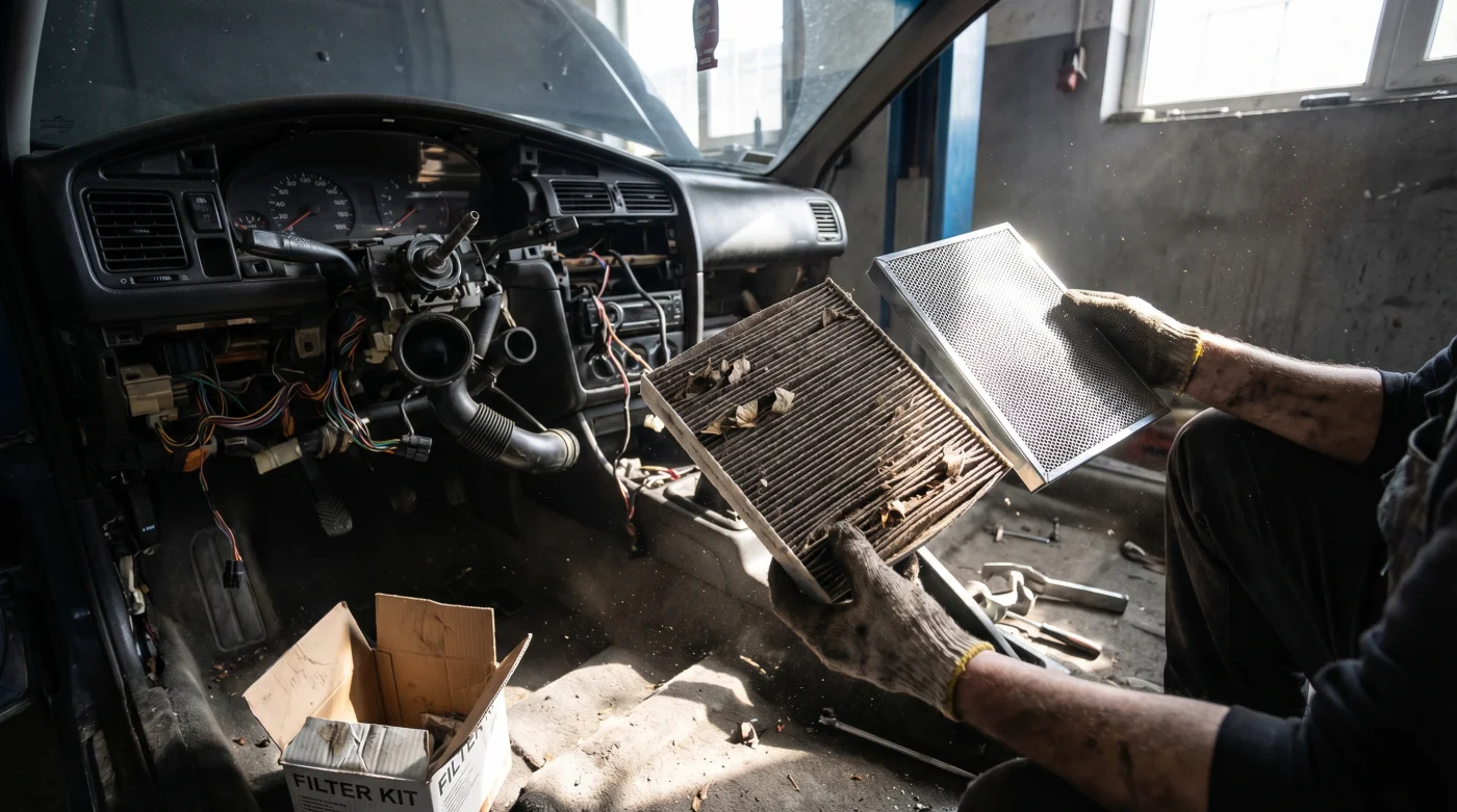 Roberto “Beto” Salinas, un técnico en refrigeración automotriz de 48 años que lleva dos décadas desarmando tableros bajo el calor seco de Hermosillo, Sonora, reconoce el sonido de un sistema estrangulado antes incluso de levantar el cofre del auto. “Ocho de cada diez compresores que cambio, piezas que al cliente le cuestan seis o siete mil pesos mexicanos, se amarraron por asfixia”, señala Beto mientras sostiene una masa rígida y grisácea que hace tiempo solía ser un filtro de agencia. “El motor eléctrico se funde tratando de succionar a través de algo que parece lodo fraguado. Cuando les instalo una malla de algodón lavable, el ruido detrás del tablero baja de inmediato; escuchas cómo el motor por fin deja de sufrir”.