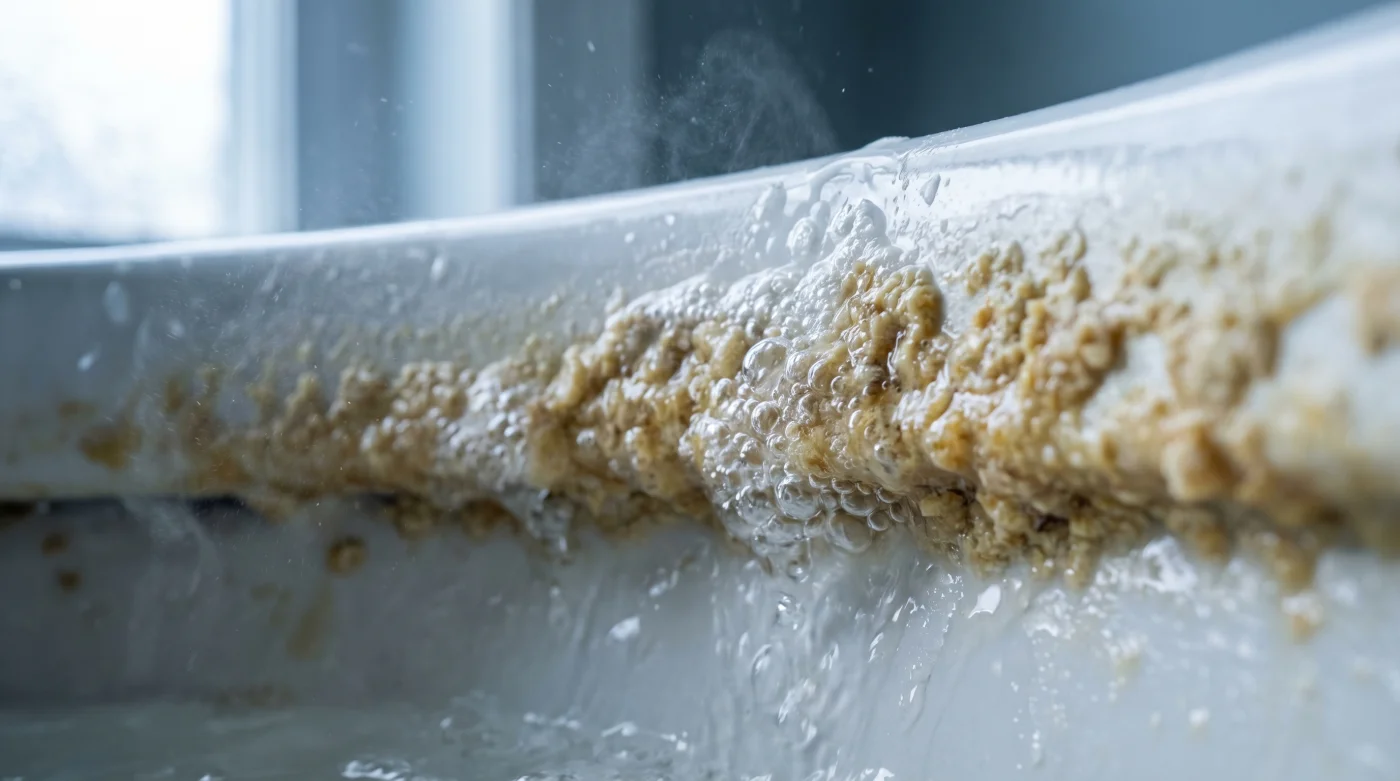 El cloro desinfecta y blanquea temporalmente, es cierto, pero no disuelve. Lo que ves formándose en las paredes de tu inodoro, esa línea amarillenta, parda o grisácea que oscurece el fondo del agua, no es suciedad común. Es sarro calcáreo. Son depósitos minerales de calcio y magnesio cristalizados que se aferran a la porosidad microscópica de la porcelana tras cada descarga. Cuando intentas arrancarlos tallando con desesperación, estás cometiendo el equivalente a intentar lijar una pared de piedra usando un cepillo de dientes. Tu rutina de treinta minutos está diseñada para agotarte, ocultando el problema bajo un fuerte olor clínico en lugar de solucionarlo desde su origen química.