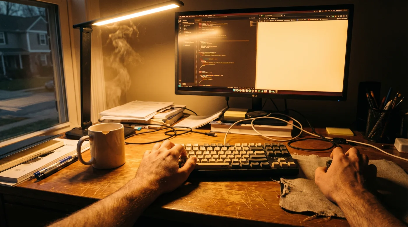 Para lograr esta transformación, tu kit de herramientas esencial incluye un foco LED regulable de 3000K con un Índice de Reproducción Cromática (CRI) superior a 90, una lámpara metálica con pantalla opaca que obligue a la luz a dirigirse estrictamente hacia abajo, y la disciplina inquebrantable de nunca trabajar con la pantalla como única fuente de luz en una habitación a oscuras.