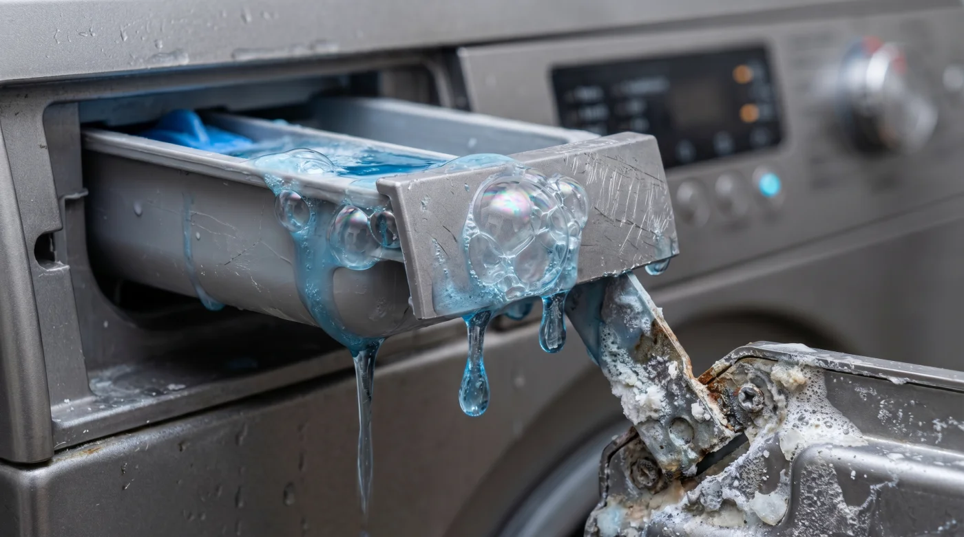 Cuando introduces demasiado químico en un charco tan pequeño de agua, la máquina no puede enjuagarlo. La espuma empuja hacia arriba, colándose en los rodamientos y bloqueando las bombas de drenaje. Tu intento por eliminar una mancha de café termina exigiendo al motor interno que trabaje el doble, sobrecalentando el sistema hasta que, un día, simplemente se rinde con un pitido de error y un olor a cable quemado.