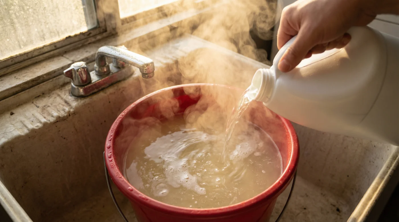 Es un instinto casi heredado de nuestras abuelas. Nos enseñaron que el hervor purifica y que las altas temperaturas son el enemigo natural de la mugre. Por lógica humana, mezclar el químico más fuerte con el agua más caliente debería crear el escudo protector definitivo para tu familia. Pero la química no perdona nuestras buenas intenciones.