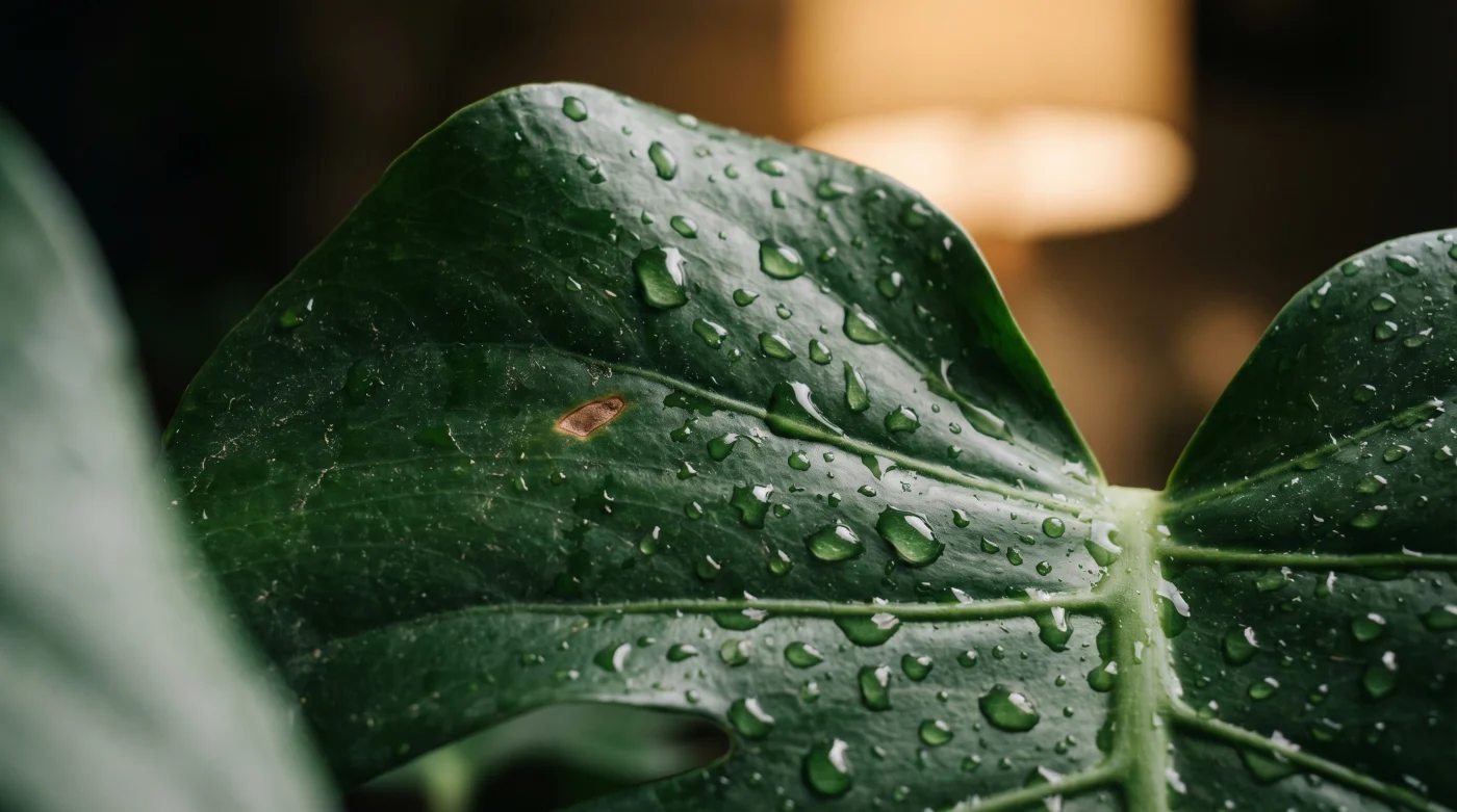 Para la purista tropical: Las Monsteras, Anturios y Calatheas aman la humedad pero odian tener los pies encharcados. Regar de noche les permite absorber el agua lentamente. Por la mañana, la capa superior estará ligeramente seca, un detalle vital para evitar mosquitos del sustrato que proliferan en el lodo.