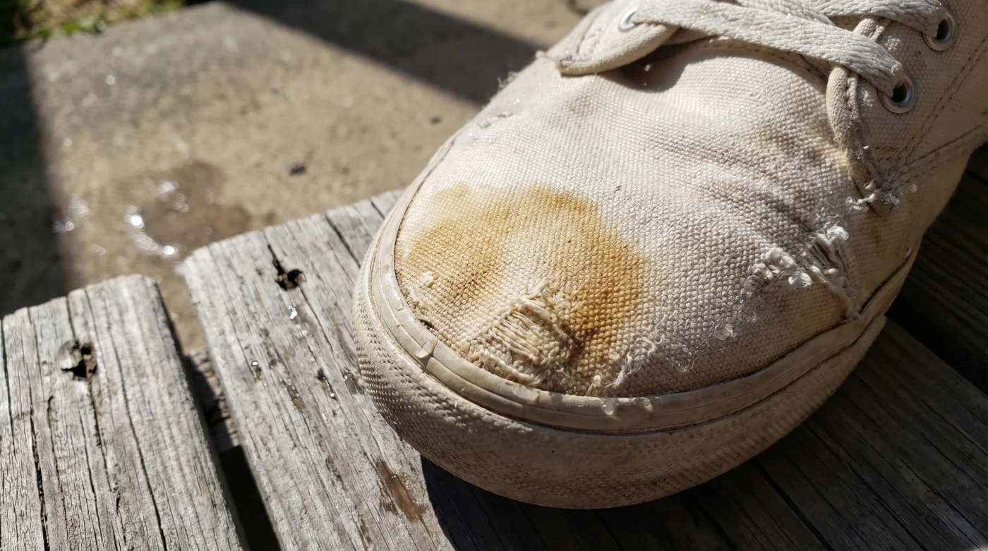 A esto se suma el pegamento industrial que une la lona con la goma de la suela. El calor extremo derrite superficialmente estos adhesivos invisibles, haciendo que migren por capilaridad hacia arriba, escalando por la tela. El resultado es ese cerco ambarino que parece imposible de borrar, sencillamente porque no es una mancha de tierra, sino una quemadura química.