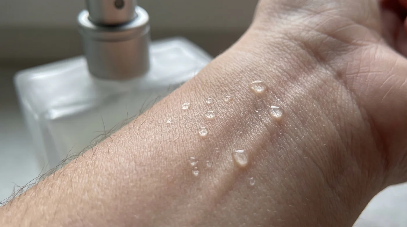 Sin pensarlo dos veces, unes ambas manos. Es un movimiento automático, casi heredado de una memoria visual colectiva. Frotas las muñecas fuertemente, sintiendo una ligera fricción cálida sobre la piel, y luego llevas las manos al cuello para repartir el líquido. En menos de tres segundos, acabas de asesinar el diseño minucioso de tu fragancia.