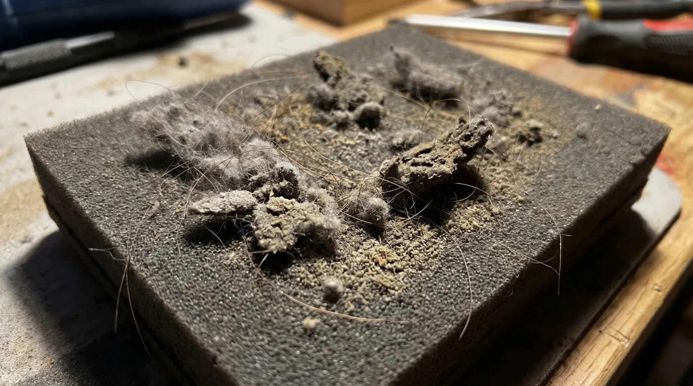 Si vives cerca de una construcción activa o en un departamento alto que mantiene las ventanas abiertas, el smog vehicular y el polvo fino de cemento actúan con la textura de un talco denso. Este polvo ultrafino burla los ciclones del depósito principal y viaja directo hacia la esponja protectora, cementándola capa por capa cada semana.