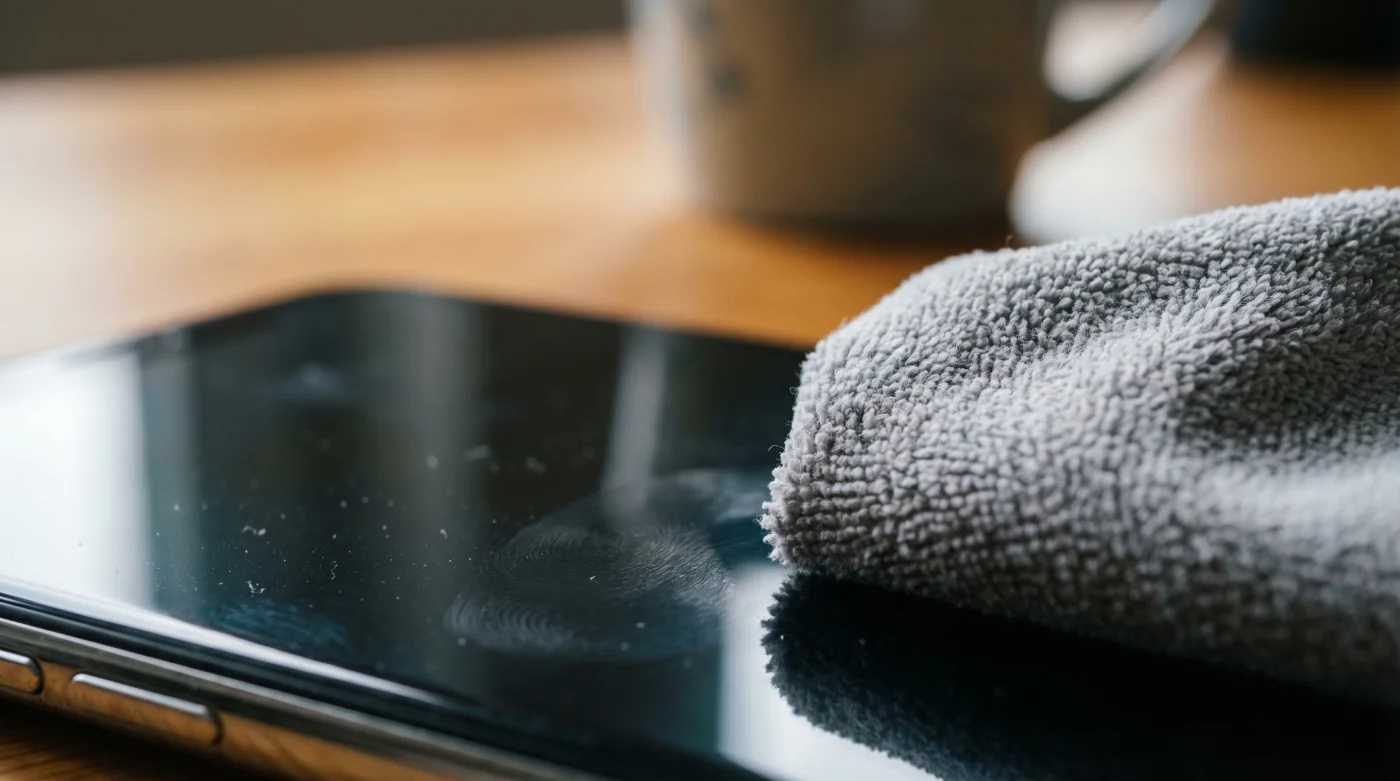 - La técnica del aliento: Para el noventa por ciento de las manchas cotidianas, exhalar suavemente sobre el centro de la pantalla aporta la cantidad exacta de humedad tibia necesaria. Pasa el paño inmediatamente trazando círculos concéntricos.