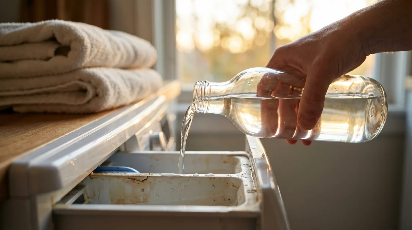 Para la familia con prisa: Cuando el cesto de la ropa sucia siempre está lleno y las prisas dominan la mañana, es fácil cometer errores de dosificación. El vinagre interviene aquí como un sistema de seguridad silencioso. Disuelve el exceso de jabón que queda atrapado en los tejidos cuando, por la prisa, servimos más detergente del que la máquina puede procesar y enjuagar correctamente.