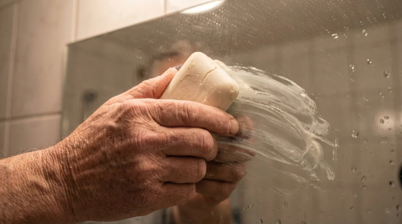 Para el pragmático apresurado: Solo necesitas un área clara y funcional para afeitarte o aplicar crema. Toma la barra seca y traza un círculo central estratégico a la altura de tu rostro. Un minuto de pulido en seco te dará una ventana perfecta de visión que resistirá toda la semana laboral sin requerir mantenimiento adicional.